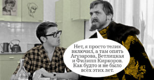 — Нет, я просто телик включила, пока гладила, а там опять Агузарова, Ветлицкая и Филипп Киркоров. Как будто и не было всех этих лет.