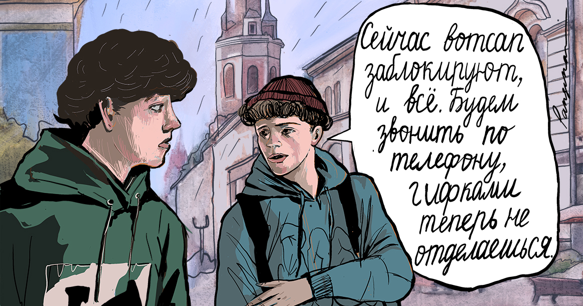 — Ей-то нормально. А вот мы с Кириллом вообще не видимся. Мне лень туда ехать, ему — сюда. Раньше хоть созванивались, а сейчас даже кружочки не записываем, потому что там нельзя вторую скорость включить как в голосовых.