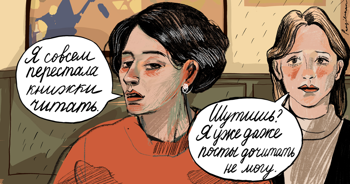 — Шутишь, что ли? Я уже даже посты дочитать не могу. Хочется на второй скорости промотать.