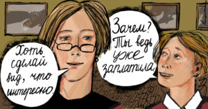 — Ну потому что надо идти на выставки признанных художников. А ты была на выставке самоназванных.
