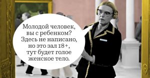 — Молодой человек, вы с ребенком? Здесь не написано, но это зал 18+, тут будет голое женское тело.