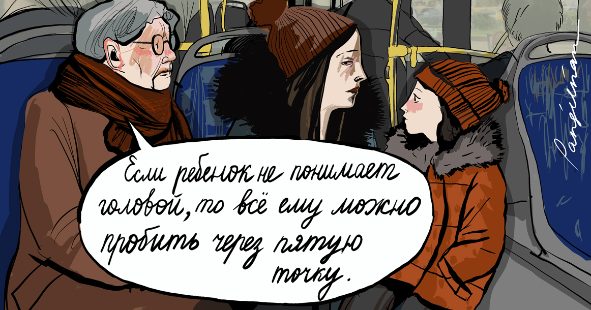 Бабушка в автобусе дает советы по воспитанию молодой маме: