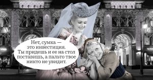 — Нет, сумка — это инвестиция. Ты придешь и ее на стол поставишь, а пальто твое никто не увидит. Ты его на вешалку повесишь — и все.