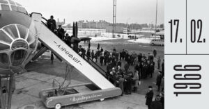 Февраль в Москве в 1966 году выдался очень снежным. 14 февраля выпало аж 35,5 см снега, и снегопад все продолжался. Сильных морозов, однако, не было. Температура держалась около –4, и над Москвой висел густой туман. Заваленный снегом аэропорт Шереметьево яростно боролся со стихией, но справиться с последствиями снегопада было трудно.