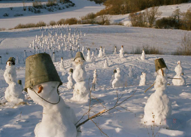Я сразу все придумал: целый народ должен подняться вперед из снега. Это должны были быть живые, настоящие снеговики.