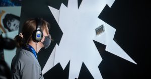 Как Цой из коптильного ада вынырнул в музыку, я выхожу из котельной в «Кино»-зал. На стенах проекции клипов и репетиций: вот Африка смачно чмокает Стингрей в «Видели ночь», а вот потный Гурьянов в одних трусах молотит по барабанам у себя в квартире рядом со счастливо кривляющимся Цоем. Крутятся бобинные магнитофоны с разными альбомами. Пока большинство перекладывает телефоны из рук в руки (надо не выключить гид, успеть сфотографировать экспонаты, себя на фоне, себя на фоне вместе с аудиогидом, будем откровенны — просто себя), девушка в сером меланжевом свитере и с пестрым клеенчатым рюкзаком пожирает глазами магнитофон с названием альбома «Группа крови». Только при мне она минут пять вдохновенно смотрела на надпись «Запись 1988 года». Был также замечен молодой человек, притопывающий ногой — вот и самые яркие проявления эмоций.