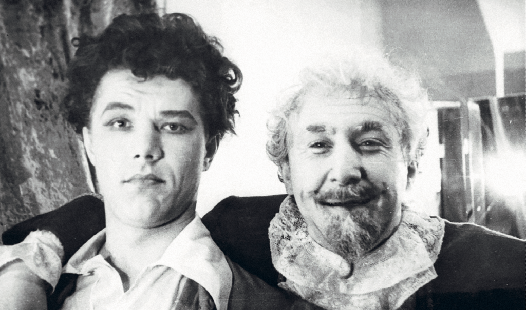 Почти все наши педагоги играли на сцене. Прекрасно помню, как Мансурова гениально играла Филумену Мартурано с Рубеном Николаевичем Симоновым, — я раз десять бегал смотреть этот спектакль. Замечательная Дина Андреевна Андреева, которая преподавала в Щукинском училище и служила в Вахтанговском театре всю жизнь, почти 70 лет, играла вместе с Мансуровой в знаменитой «Зойкиной квартире». Мой педагог и в будущем близкий друг Владимир Георгиевич Шлезингер был знаменит ролью Панталоне в «Принцессе Турандот». Вся Москва ломилась в Театр Вахтангова, чтобы увидеть Этуша в роли слуги Лаунса в комедии Шекспира «Два веронца» или в образе Журдена в комедии Мольера «Мещанин во дворянстве». Днём эти люди учили нас актёрскому мастерству, а вечерами сами демонстрировали его высочайший уровень в Театре Вахтангова. Начиная со второго курса мы уже участвовали в массовых сценах и даже в небольших эпизодах отдельных спектаклей. Выйти на сцену с такими звёздами, как наши педагоги, было невероятным, огромным счастьем.