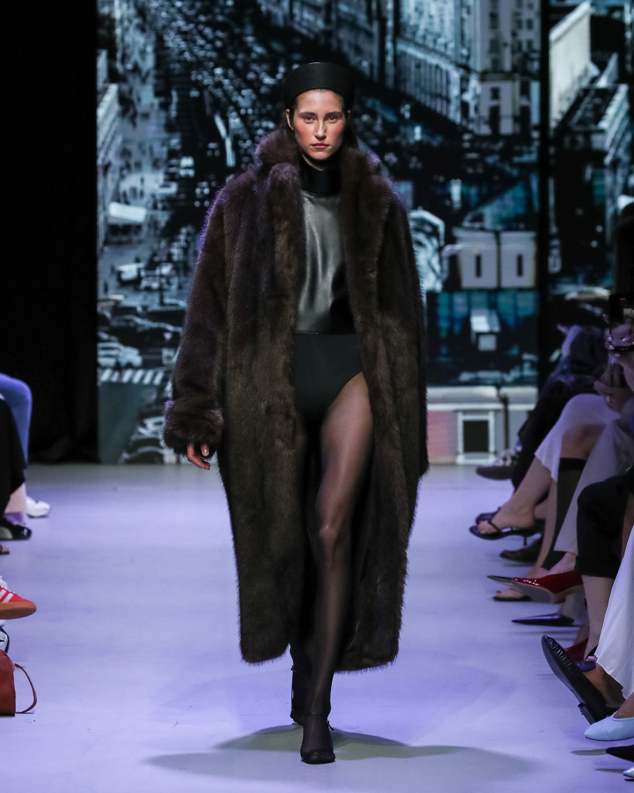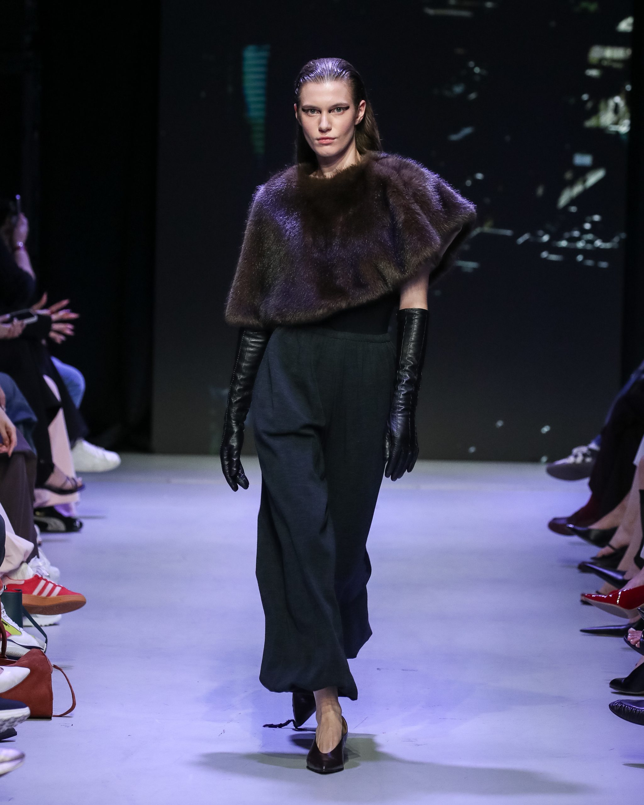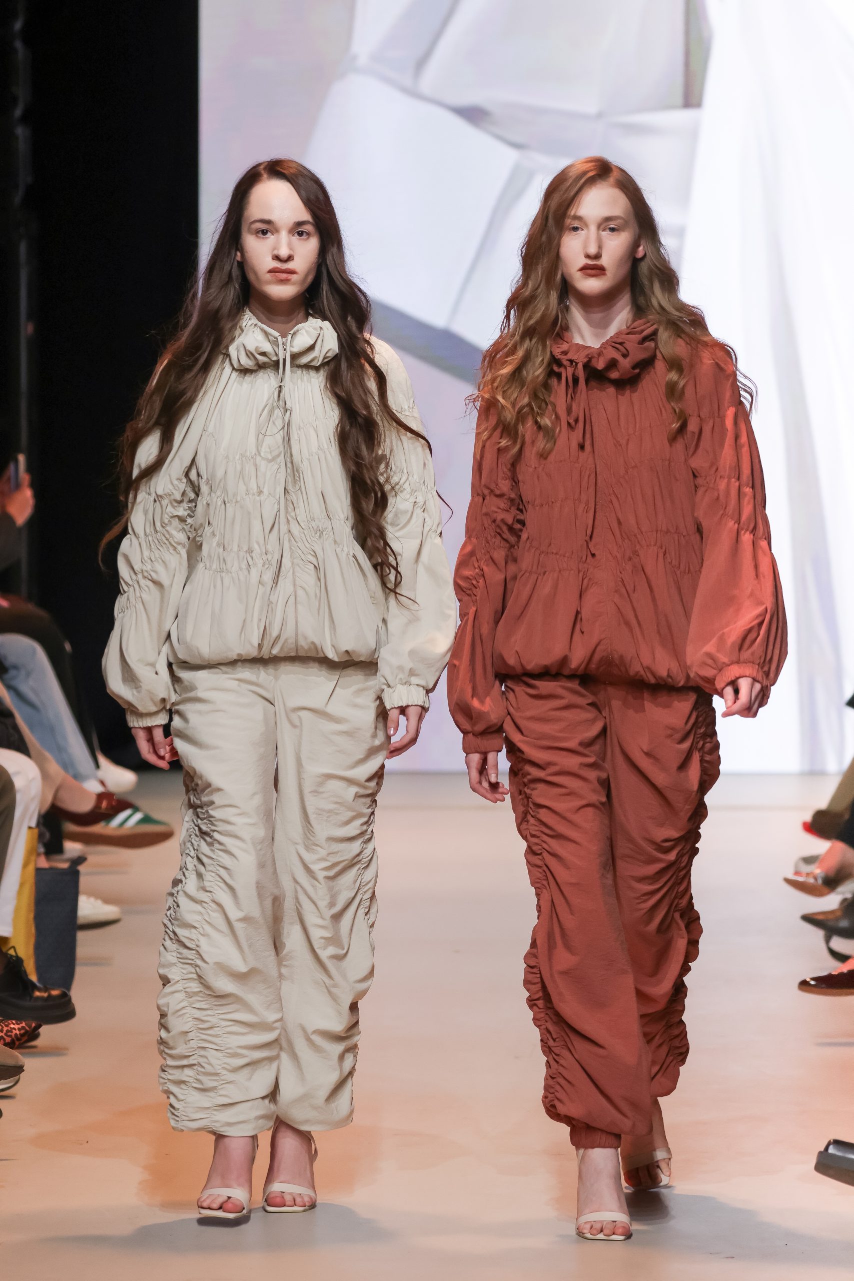 Бренд muliér умело лавирует на стыке высокой и уличной моды — его вещи авангардного кроя легко интегрируются в повседневные луки. Новая коллекция «Город, которого нет», представленная на Московской неделе моды, вдохновлена нереализованными архитектурными проектами Москвы XX века — от башни Татлина до Дворца Советов. Принты с эскизами, ретрофутуристичные силуэты, сочетание меха со спортивными костюмами и кокошников с кожаными балаклавами — все это создает образ героини из альтернативного будущего. А почему бы и нет?