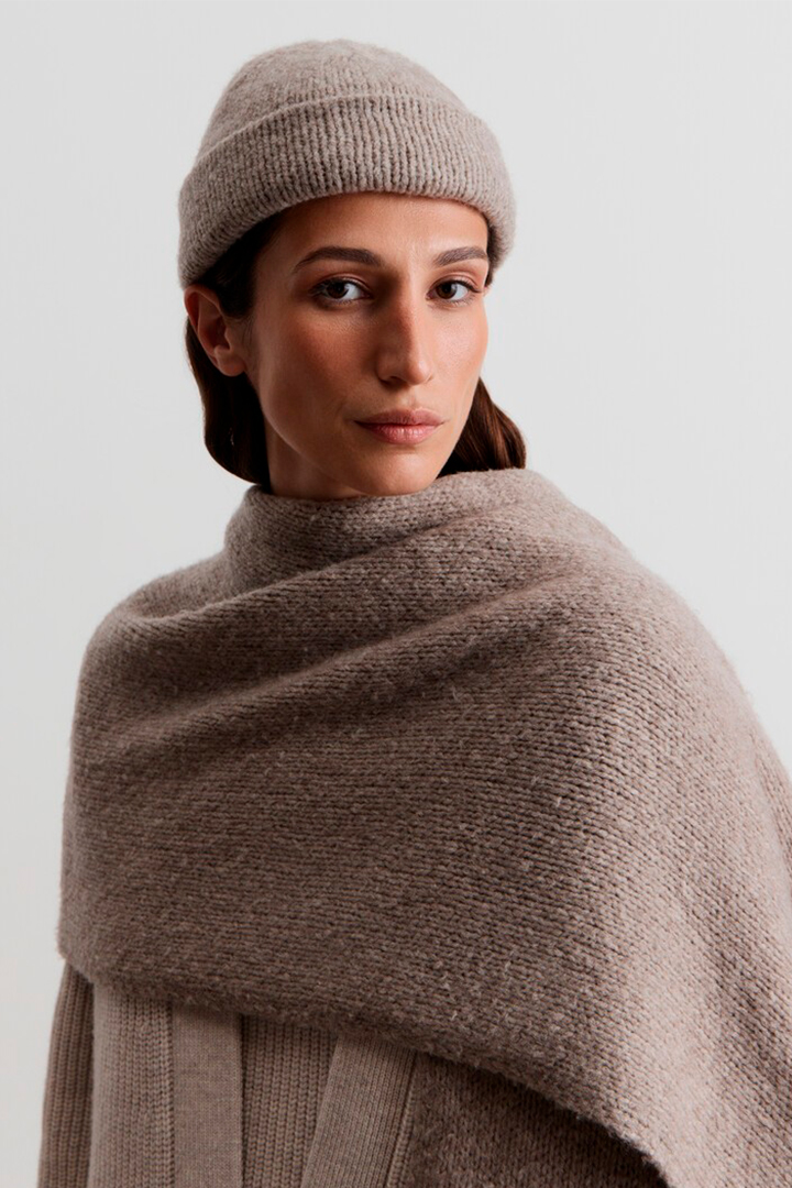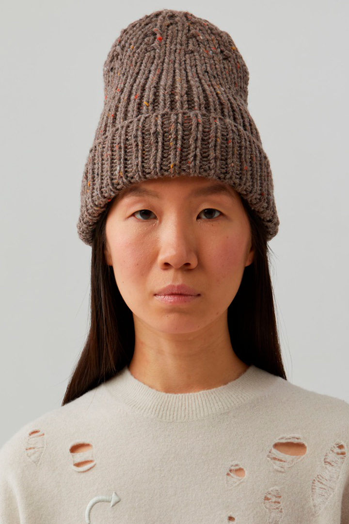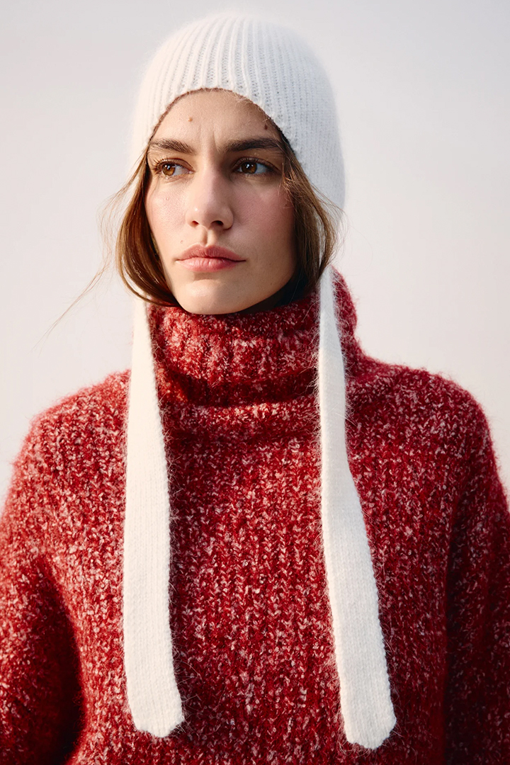 Тактильные ткани тоже тренд холодного сезона. Мало что может быть надежнее и жить в гардеробе дольше качественной шерстяной шапки грубой, рельефной вязки. К слову, с ними хорошо сочетаются и кожа, и мех, и шерсть, и образ становится более фактурным и «трушным».