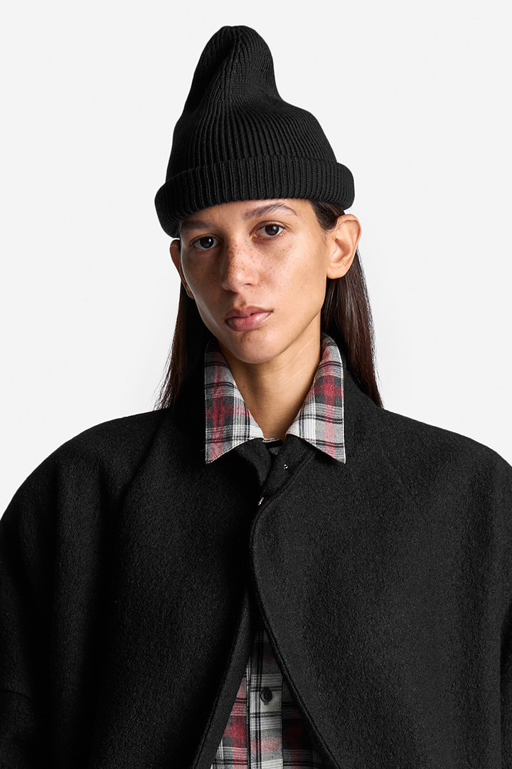 Знакомые всем бини наконец-то дозрели до суровых российских реалий. Они стали толще, пушистее и теперь по-настоящему греют, а не просто числятся на голове для галочки. Для тех, кто желает прикрывать лоб в мороз полностью, вариантов классической шапки тоже немало — от испачканной в краске Monochrome до Sorry, I’m Not из вафельного полотенца с лого.