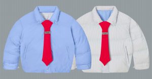 Черные брюки, белая сорочка и галстук — что как нельзя лучше показывает статус «солидного» человека. Испанский бренд Ssstufff создал пуховик в виде офисной рубашки с красным галстуком специально для тех, кому статус важен в любое время года.