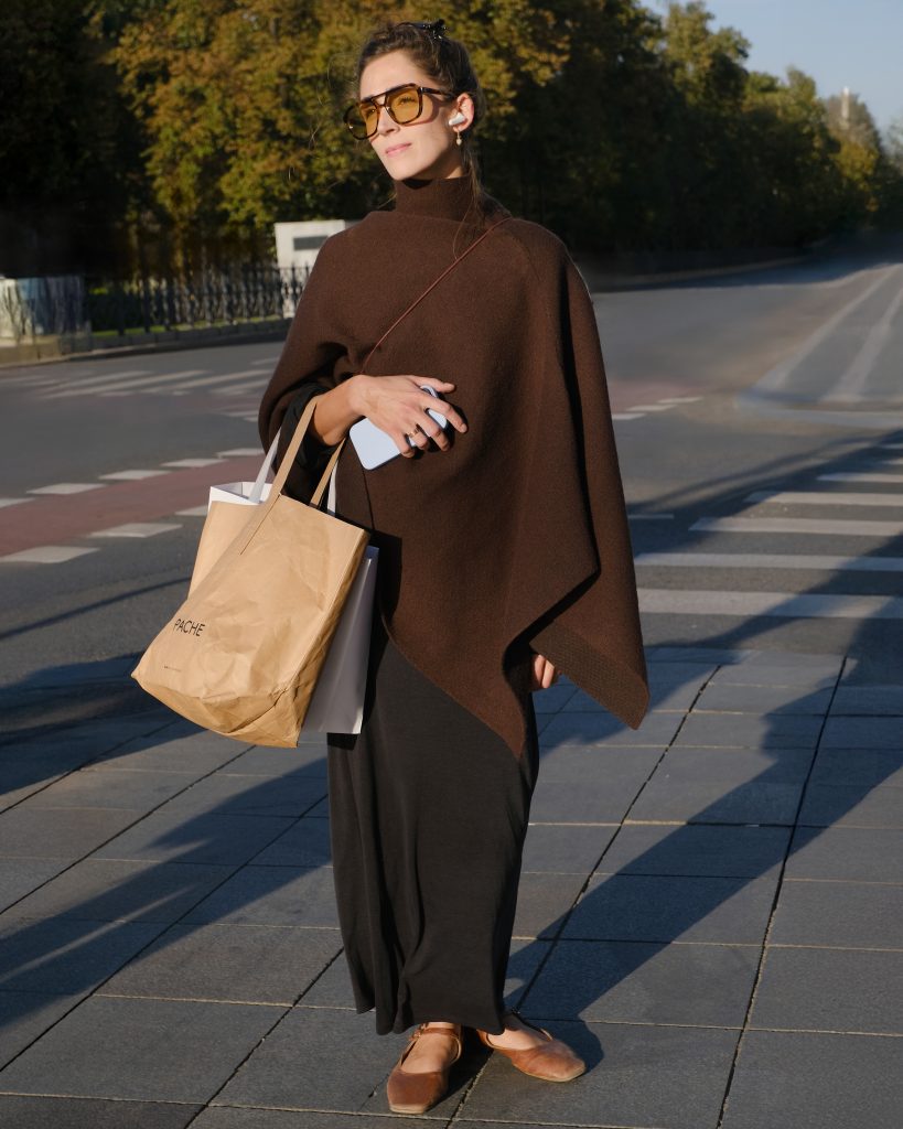 Кейп — Cos, платье и очки — Lime, сумка — памятный винтажный аксессуар из Венеции.