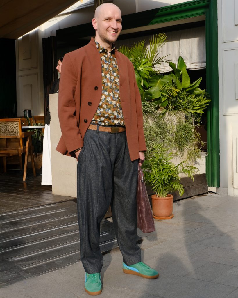 Мне кажется, в основном люди здесь одеваются по-деловому и в более сдержанных оттенках, поэтому заметно выделяются те, кто играет с цветом. Я люблю яркие цвета и стараюсь сам находить свой баланс между привычной сдержанностью и небольшими акцентами, которые делают образ более индивидуальным.