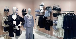 Дизайн магазина лаконичен и выполнен в розовых тонах. Из недостатков: все вещи находились в зале, из-за чего некоторые позиции практически невозможно было достать и рассмотреть — рейлы забиты вещами и стоят вплотную. Зато ассортимент порадовал. Помимо бельевых комплектов в разных цветах и материалах удалось найти сатиновые пижамы как с длинными штанами, так и с шортами. Больше всего удивило, что в бутике также продаются вещи, в которых можно выйти на улицу, например футболки и бомберы, так что есть что надеть и на белье.