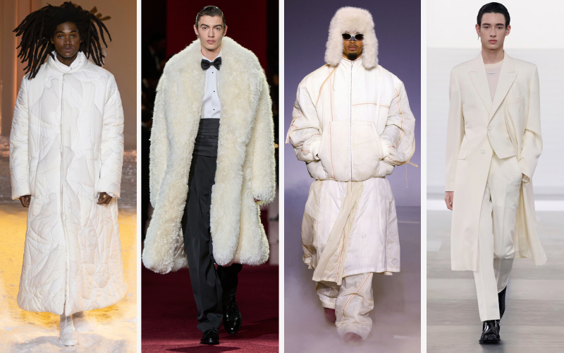 Total white, а если точнее, белый пуховик или пальто, уверенно претендует на роль новой базовой вещи в мужском гардеробе. У франко-канадского подиумного бренда Paradis запомнилась длинная стеганая версия современной формы, в то время как Dior сделал ставку на облегающий пошив и скульптурный силуэт. Тем, кто предпочитает авангардный дизайн классике, понравится модель от IM Men — мужского кутюрного бренда Issey Miyake, искусно работающего с флюидными воздушными текстурами. Наконец, есть и сногсшибательный вариант, который в зависимости от остального вашего стиля сделает из вас или плюшевого медведя, или очень стильного джентльмена — от Dolce & Gabbana, которые показали огромную белоснежную шубу.