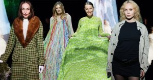 Совсем другое, почти семейное настроение было на показе бренда Masterpeace Евгении Линович, самой известной многодетной мамы светской Москвы (у нее детей аж пятеро, Лена Перминова со своими четырьмя идет сразу следом). Большая любительница театра и небанальных путешествий в поисках себя (а с таким количеством детей себя потерять — раз плюнуть), Линович и коллекцию показала в том же ключе — с духовным учителем посредине подиума, медитативным танцем балерины Большого, с девушкой plus size среди моделей и моделью Таисией Левченко с бионическим протезом руки. И даже стилист показа Гала Борзова вышла в одном из образов коллекции с дочкой на руках. Все они выглядели так, словно собрались на бохо-вечеринку где-то на Ибице — в кружевах, сапогах, замшевых жилетках с бахромой и в шляпах, которые Женя делала своими руками в Перу, когда ездила туда с волонтерской миссией. Не удивлюсь, если Перминова уже готова заказать половину коллекции.