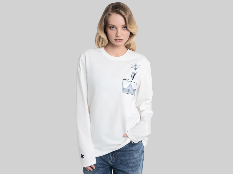 Самобытный бренд Muus (в переводе с якутского — «лед») выпустил лонгслив (9700 руб.) с изображением древнего жилища Урасы, куда якуты переезжали с наступлением весны для собирательства и животноводства. Из Урасы метафорично вырастает Сардаана — цветок, способный выживать при очень низких температурах и потому считающийся символом удачи. На спинке лонгслива — еще одно послание: «Без корней дерево не растет, без ветра не колышется. Когда старое уходит, новое расцветает».