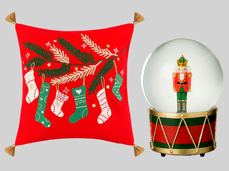 К зимним праздникам вовсю готовятся не только городские службы, но и бренды. Особенно интерьерные: в их ассортименте уже засветился полный набор для украшения дома. Так что отправляемся в магазины Tkano за декоративными подушками с елками и леденцами (2290–3990 руб.) и невульгарным столовым текстилем (430–4050 руб.), а в Dantone Home — за снежными шарами со Щелкунчиком (9500 руб.) и небанальными декоративными венками (4300 руб.).