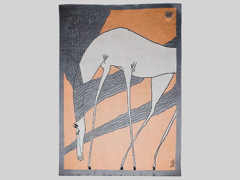 Еще одна лошадь украсила коллаборацию локального бренда Telo, забайкальского производства «Руно» и художника Даши Намдакова, чьи работы можно встретить в Третьяковке, Эрмитаже, музеях Лондона, Нью-Йорка и Пекина. Плед (19 000 руб.) соткан из шерсти мериноса по картине, которую Даши написал специально для проекта. Художник надеется, что с помощью этой коллаборации поможет «сохранить ремесло и обратить внимание на то, что мы можем создавать уникальный текстиль на уровне мировых брендов в России».