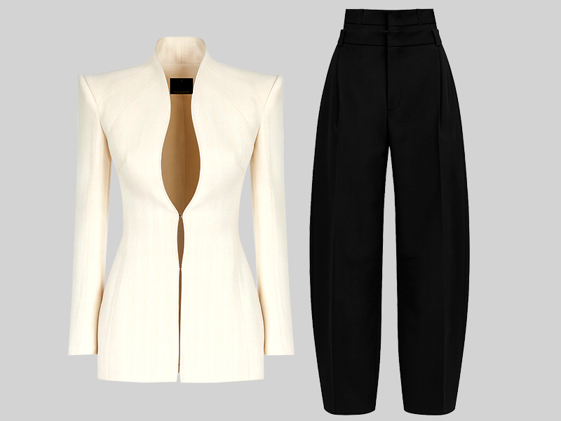 Еще один российский бренд Yuliawave представил женские костюмы, которые грех прятать дома. Приталенные жакеты (68 000 руб.) с фигурным вырезом и седловидными плечами подойдут и для вечерних, и для деловых встреч. Особенно если носить их вместе с брюками О-силуэта с двойным поясом, классическими защипами и заутюженными стрелками (48 000 руб.).