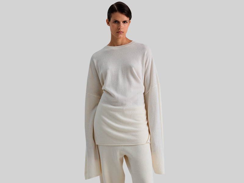 Объемный лонгслив из мериносовой шерсти уральской марки Mankova (14 900 руб.) — вещь с секретом. По боковым швам расположились петля и пуговица — можно адаптировать посадку и сделать oversize-изделие приталенным. А еще у него длиннющие рукава, как у Пьеро: приятный ностальгический угол обеспечен.