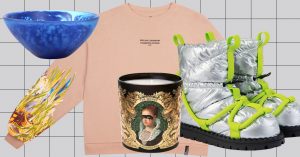 Одежда с картинами русских импрессионистов, подносы для хранения вещей, посуда из смолы и многое другое.