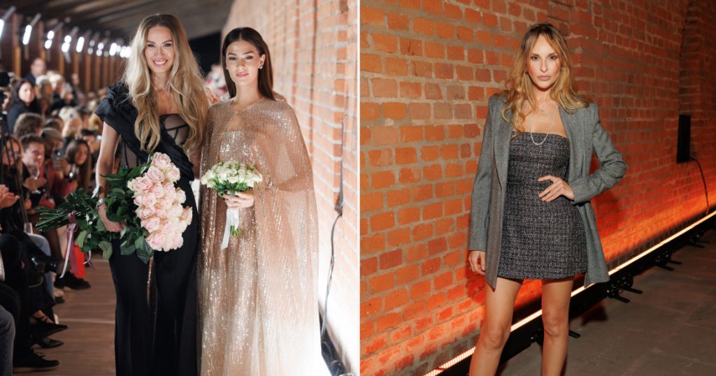 Не менее эффектная невеста была и на подиуме у дизайнера Александры Серовой — невероятной красоты Анастасия Шубская, жена хоккеиста Александра Овечкина, закрывала показ в золотом свадебном наряде, хотя в отличие от Маши Миногаровой замуж она больше не собиралась. На Московской неделе моды бренд Alexandra Serova отвечал за кутюрную классику — коллекция была создана в стиле начала XX века с отсылкой к красоте знаменитых постановок «Русских сезонов» Сергея Дягилева от «Лебединого озера» до «Шехерезады» и «Жар-птицы». Певица Пелагея и актриса Софья Каштанова в первом ряду на показе сидели с таким видом, словно готовы унести домой каждое второе платье.