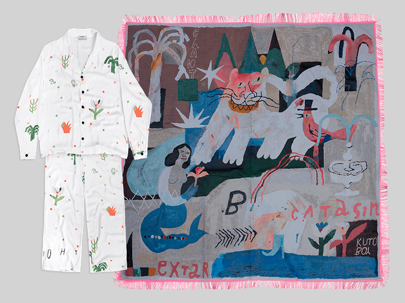 Российский бренд Homestory и художник-иллюстратор Илья Кутобой выпустили коллаборацию. Кутобой — любимец локальных фэшн-марок, который уже сотрудничал с Befree и Planta Rosa, теперь экспериментирует с домашним текстилем. Результат — комплекты постельного белья (18 900 руб.), пижамы (16 900 руб.) и два покрывала-ковра (29 900 руб.), в дизайне которых использованы работы художника в стиле тропический примитивизм. В продаже на сайте бренда.