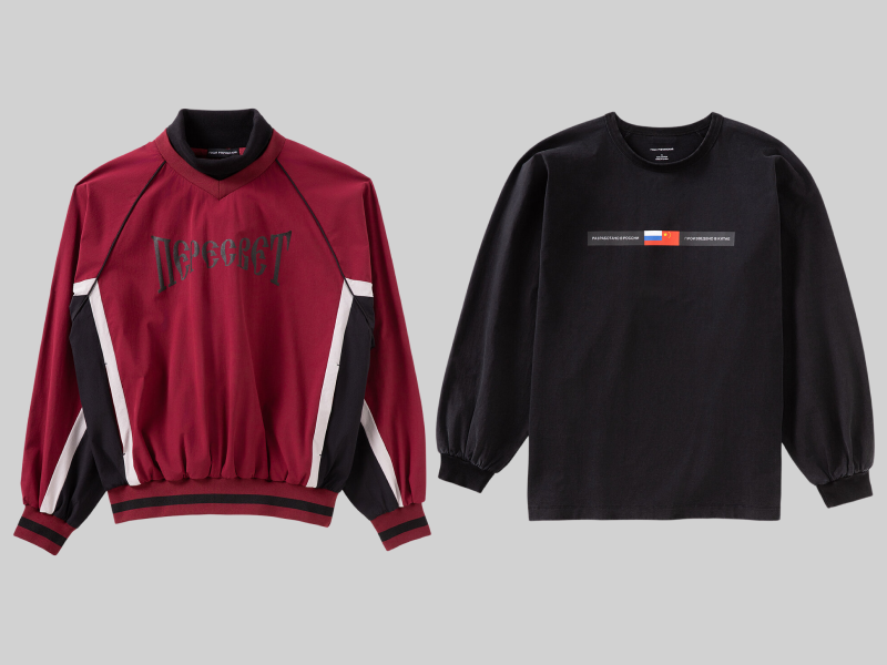 В новой коллекции «Пересвет» дизайнер Гоша Рубчинский размышляет об атлетизме как эстетическом и культурном явлении и раскрывает через спортивные формы и лаконичный крой идею самодисциплины. Помимо принта с названием коллекции, превращающего любую вещь в идеальный костюм для съемок в «Слове пацана», на лонгсливах (9900 руб.) и футболках (8900 руб.) используется надпись «Разработано в России — произведено в Китае». Вещи доступны эксклюзивно на «Ultima Яндекс Маркете».
