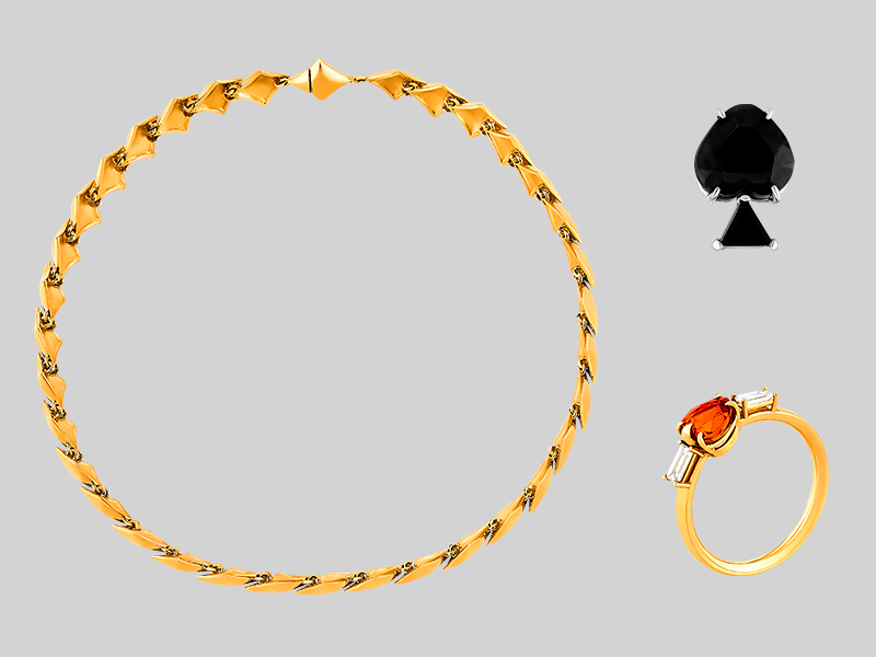 Универмаг украшений Poison Drop снова объединился с художницей Машей Янковской. На этот раз результатом коллаборации стала капсула, посвященная теме и эстетике карт. Точнее, карточным мастям и значениям, которыми их наделила художница: пики — драма, черви — гармония и любовь, бубны — деньги и успешный успех, трефы — внутренний рост. Можно собрать свою ювелирную «колоду» по смыслу, можно по красоте: серебряные чокеры-«бубны» (81 000 руб.) отлично сочетаются и с золотыми кольцами «черви» с цветными сапфирами и бриллиантами (149 000 руб.), и с моносерьгой «пики» с черными сапфирами (99 000 руб.). Помимо онлайна коллекцию можно найти на витринах, оформленных в духе игральных мастей, в магазинах Poison Drop в «Цветном», «Метрополисе» и «Атриуме».