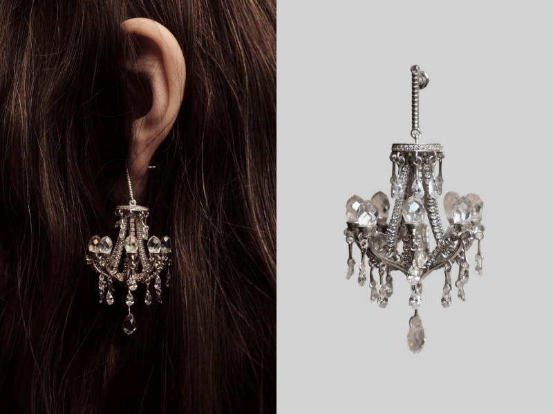 Создатели бренда одежды и аксессуаров «Речи» говорят, что их марка «для носителей не вещей, а личности». Серебряная моносерьга в виде театральной люстры с лампочками-фианитами, очевидно, для личности незаурядной и не чуждой яркой самопрезентации: остаться незамеченной в таком украшении точно не выйдет. В общем, для поклонниц светить всегда, светить везде. Цена вопроса — 27 990 рублей на сайте марки.