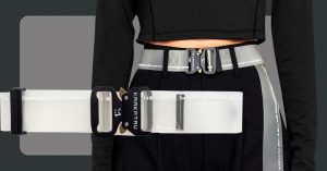 Без сюрпризов жизнь пресная. Тут за них взялась уважаемая отечественная марка уличной моды (основана в Петербурге в конце 1990-х, сейчас штаб-квартира в Шанхае): полупрозрачный силикон, текстовый принт и пряжка, как на авиационных ремнях безопасности. Плюс к тому дополнительная длина, чтобы все перечисленное было легче заметить.
