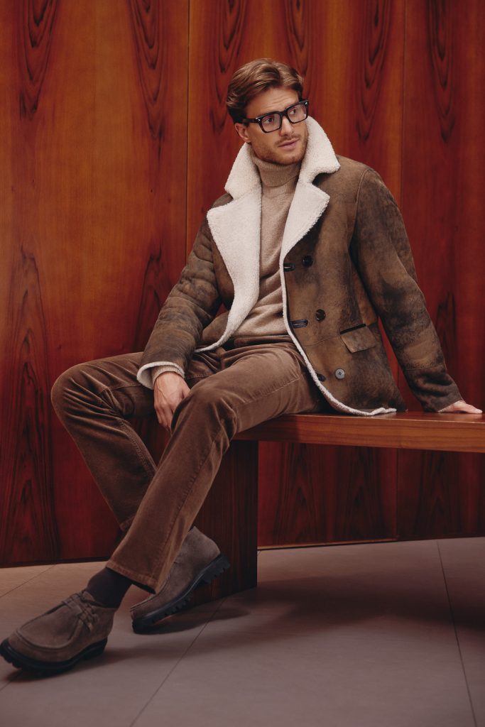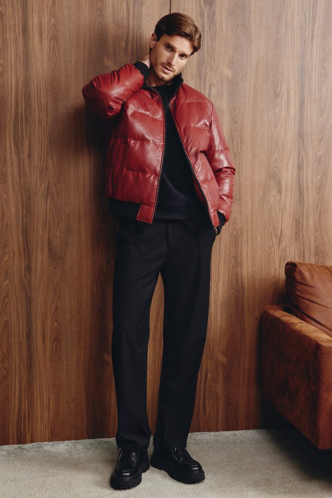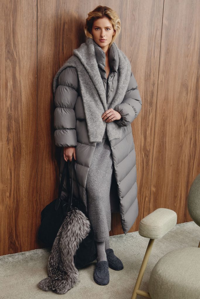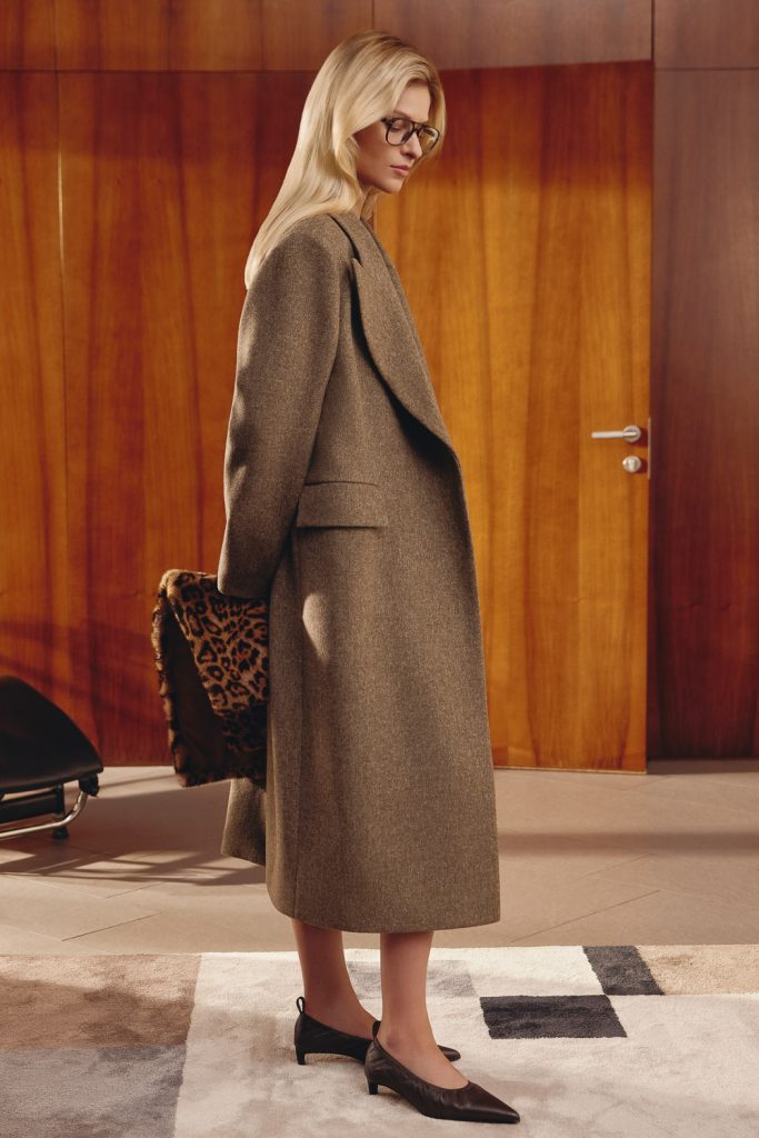 Вторая линия — кэжуал — с образами на стыке классики и спорта. Здесь мягкий трикотаж, объемный деним и умеренные оверсайз силуэты. Третья линия — мужская. Мужчинам осенью и зимой предлагают обратить внимание на кашемировые джемперы, лонгсливы, свитеры с молнией, брюки, в том числе из вельвета и денима, пальто и дубленки лаконичного кроя.