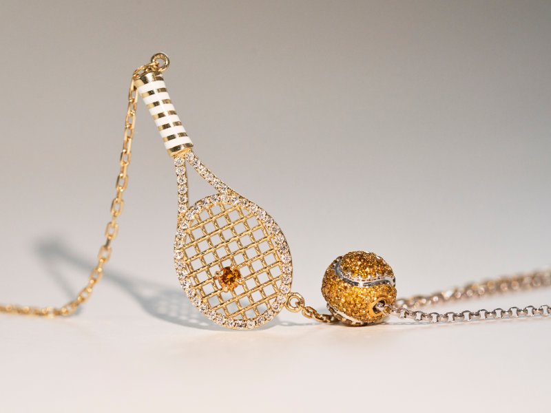 Новый российский ювелирный бренд Cut предлагает использовать украшения как способ продемонстрировать собственные увлечения. Свежая коллекция даст такую возможность поклонникам тенниса: в нее вошли подвески в виде ракеток из белого и желтого золота, а также подвески-шармы (белое золото, желтые бриллианты), напоминающие теннисные мячи.