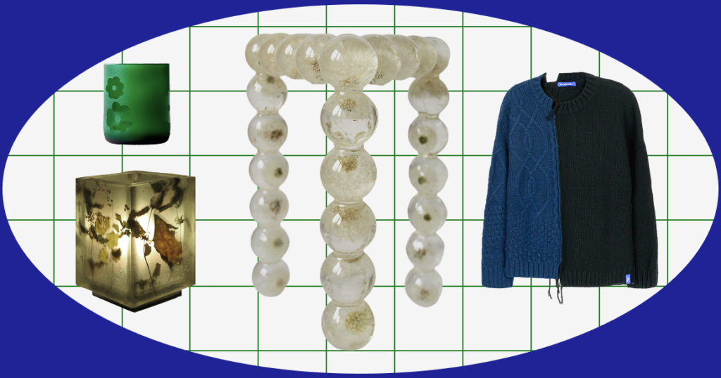 Предметный дизайнер Аня Андронова предпочитает малые скульптурные формы крупным, а эпоксидную смолу и полевые и садовые растения — другим материалам. «Для меня важно создавать изделия своими руками, от сбора цветов в поле и до финишной полировки смолы, так не теряется эмоциональная связь с работами», — объясняет дизайнер. Результаты ее полевого скаутинга можно увидеть внутри настольных светильников (40 000 руб.) и столиков с одуванчиками (67 000 руб.), а заказать — на сайте галереи Sample.