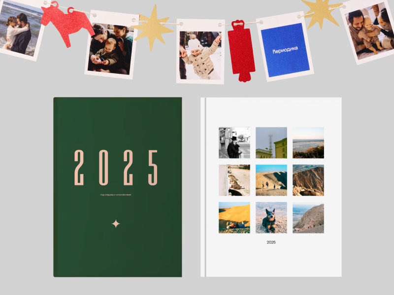 Сервис Варвары Веденеевой «Периодика» традиционно крепко выступает в жанре подарков для близких и тех мифических людей, у кого все есть, и предлагает дарить воспоминания. Например, в виде гирлянды (2490 руб.) из декоративных лошадок, снежинок и прочих новогодних атрибутов и 12 фотокарточек, на которых запечатлены яркие моменты из жизни. Лот номер два — фотокнига «Итоги года» (от 4490 руб.): шесть тематических обложек на выбор, 40, 60 или 80 страниц для ваших снимков и понятный дизайн-конструктор на сайте. Если озаботиться заказом сейчас, а не вплотную к дню X, напечатают и доставят примерно за неделю.
