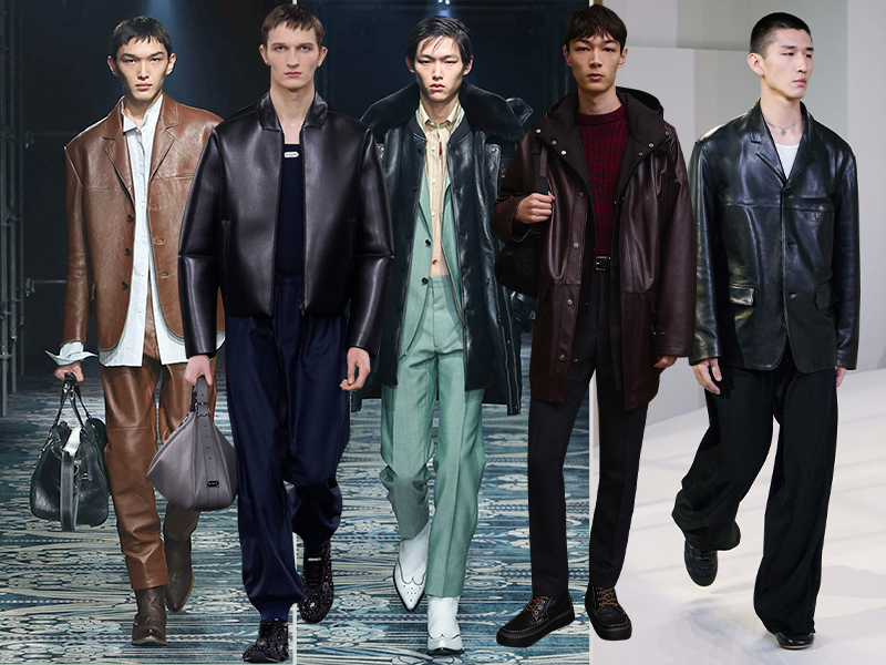 Кожаные куртки — вечная классика, их популярность волнообразная, но не уходящая. Это одна из самых разумных инвестиций в гардероб, которая всегда окупается. В новом сезоне тренд проявляется в коллекциях повсюду — дизайнеры обыгрывают кожу в стиле 1990-х (есть даже модели с теплой подкладкой и мехом как отдельный биг-тренд сезона), но есть и более классические версии деловых блейзеров, объемных бомберов и тренчей в пол, как у Prada, Dior и Dunhill.
