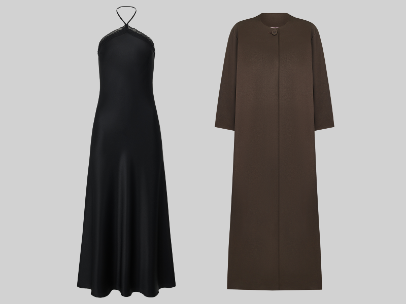 Российская марка Stelmy предлагает относиться к домашней одежде с тем же вниманием, что и к «парадной»: брюки (18 000 руб.) и топ (19 000 руб.) из хрусткого поплина, атласное платье-сорочка с кружевной отделкой (30 500 руб.) и халат-пальто с пыльно-розовым подкладом легко представить на улицах города, встречах с друзьями и даже вечеринках. Особенно если дополнить их кейпом с драпировкой из той же «домашней» капсулы.