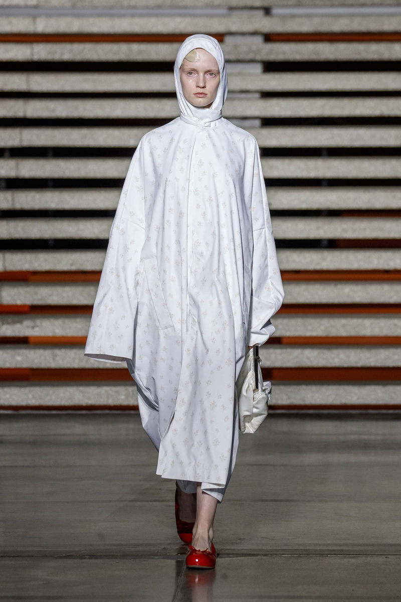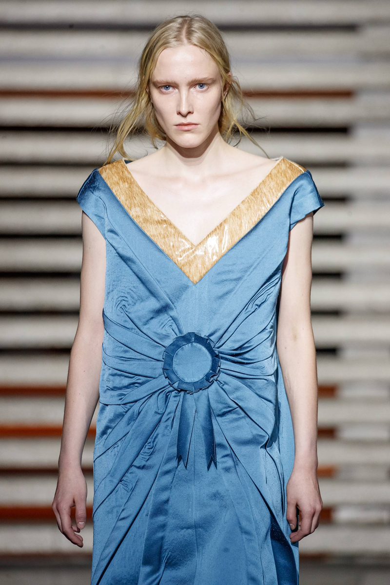Показ сопровождала «музыка без музыки» от 404.zero и N’caged — шероховатая и медитативная, она постепенно погружала зрителей в ритм коллекции. Стилизовала показ сама Нино Шаматава вместе с Алиной Фрост — выпускницей команды Юки Вижгородской (экс-стайлинг-директор ЦУМа), впервые выступившей как ведущий стилист показа. Понравилась работа с аксессуарами — обувью и сумками, которые скоро появятся в магазинах бренда. Самые запоминающиеся вещи — кожаное фактурное платье с эффектом жженной кожи и платье с нашивками-медалями для тех, кто тоже заразился достигаторством.