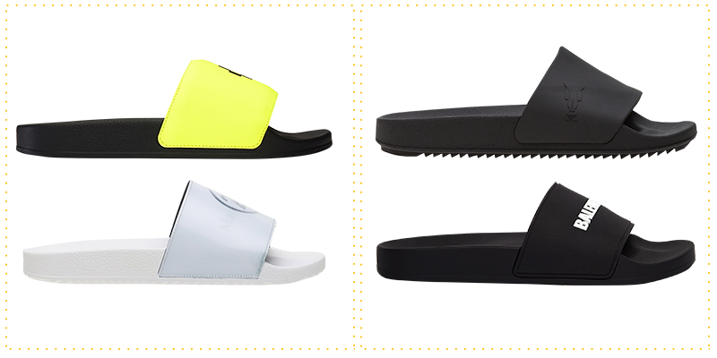 Но не сандалии, а резиновые шлепанцы в этом сезоне заполонили прилавки модных магазинов. Самые изысканные женские модели — как всегда в магазине Leform: черные с рифленой подошвой Rick Owens за еще приемлемые 9900 рублей и минималистичные белые Maison Margiela уже за 17 990 рублей. На Aizel мужские шлепанцы от миланского диджея и дизайнера Марсело Бурлона продаются за 11 900 рублей, а простые черные Balenciaga на сайте SVMoscow — за безумные 20 600. Шлепанцы не сандалии, и носить их с носками точно не стоит, если вы не рэпер.
