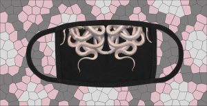 Есть и другие варианты. Посмотрите, какие симпатичные маски со змейками получились у итальянского бренда Marcelo Burlon County of Milan (5740 рублей). У Off-White, от которого наверняка писают кипятком ваши дети-подростки, маски просто украшены названием бренда и стоят сравнительно недорого: 6500 рублей на сайте ЦУМа и 6800 рублей в магазине КМ20.