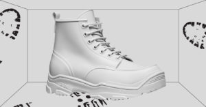 После суперуспешной коллекции аксессуаров, сделанных для LV вместе с  братьями Чепменами, Джонс выдал новый хит — каучуковые монохромные ботинки, будто только что искупавшиеся в банке с масляной краской, издалека напоминающие хрупкий гипсовый слепок.