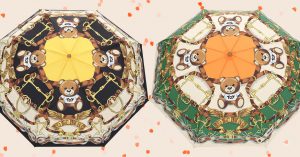 Любовь к медведям у Moschino началась в 1988 году, когда основатель бренда итальянец Франко Москино сделал шапку и воротник из плюшевых мишек. В 2014 году модный дом переосмыслил эту шапку, а также выпустил духи, флакон которых был сделан в виде мягкой игрушки. Чтобы его открыть, медведю нужно было оторвать голову. С тех пор медведи появляются везде: вышивками на свитерах, на подошвах кроссовок, на сумках, на чехлах для телефонов, на рюкзаках — словом, можно прийти в медвежьем тотал луке. С зонтиком.