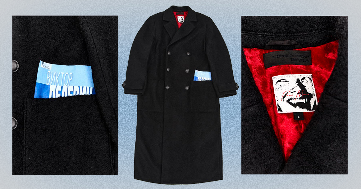 Французский авангардный бренд Enfants Riches Déprimés, который любит наша рэп- и блогерская тусовка, уже выпускал подобное пальто несколько лет назад. Марка просто прикрепила на карабин к пальто роман Альбера Камю «Посторонний», который можно было легко снять и носить с собой как клатч. За редким пальто все еще гоняются поклонники бренда и иногда выставляют его на ресейл стоимостью от 3000 до 5000 долларов. Российский Пелевин будет чуть скромнее — 55 000 рублей. Впрочем, и в этих пальто, и в их цене есть свой красивый абсурд — вполне в духе произведений, к которым они отсылают.
