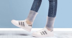 Специально для москвичей (а также, вероятно, для жителей Венеции, улицы которой то и дело заполняются водой, и Петербурга, известного своей погодой) китайцы придумали резиновые чехлы для кроссовок. В сложенном виде они занимают мало места в сумке. Натягиваются на обувь сверху, как калоши, но намного мягче по качеству и выше — как гольфы. Чехлы сделаны из ТПЭ — термопластичных эластомеров или термопластичного каучука.