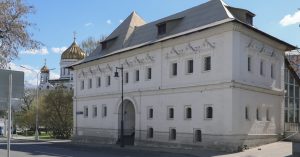 Двухэтажное «на погребах» (на подвале) строение на Пречистенке, расположенное «глаголем», то есть имеющее в плане букву «Г», с проездной аркой, именно такой показательный пример. Можно сделать предположение, что участок, выделенный под строительство, был сравнительно небольшим. Про Белые палаты рассказываем в рамках проекта «Московский дом».