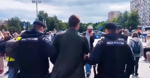 На видео, опубликованное в телеграм-канале «Осторожно, Москва», также попал мужчина, который вышел к памятнику Пушкину с плакатом «С днем рождения, Алексей». Его, разумеется, задержали. Аналогично ОМОН действовал и в отношении другого мужчины, который у памятника Пушкину разбросал листовки.