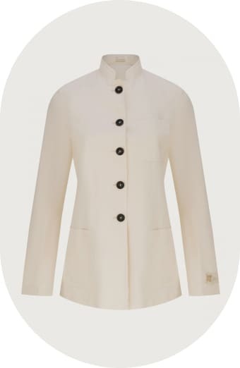 Жакет или пиджак премиального качества легко отличить по тому, насколько внимательно при производстве отнеслись к деталям — фурнитуре, отстрочке лацкана, подкладке. Иногда для подкладки специально выбирают шелк или фуляр — тонкую натуральную ткань — более яркого цвета или с орнаментом. Если такой пиджак или жакет снять и оставить, например, на спинке стула, подкладка точно не останется незамеченной и станет дополнительным штрихом к образу.