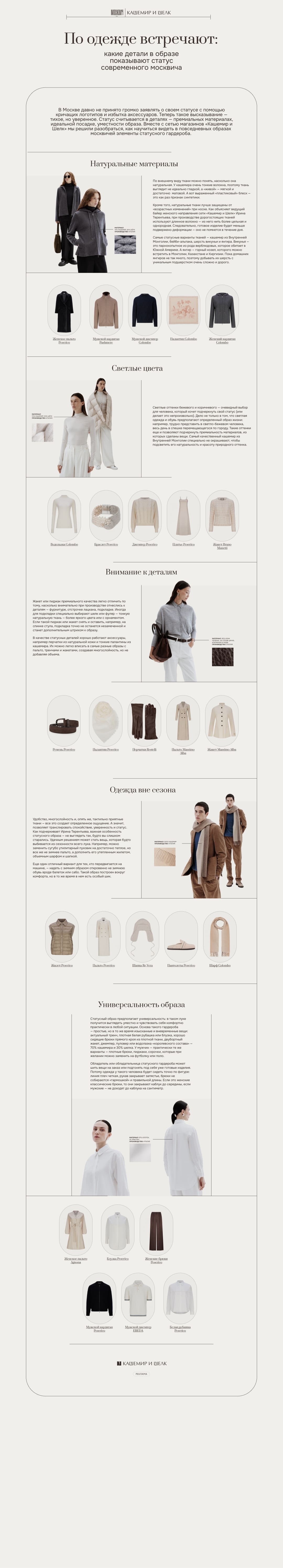 В Москве давно не принято громко заявлять о своем статусе с помощью кричащих логотипов и избытка аксессуаров. Теперь такое высказывание — тихое, но уверенное. Статус считывается в деталях — премиальных материалах, идеальной посадке, уместности образа. Вместе с сетью магазинов
