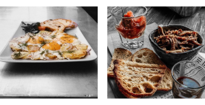 — яичница по-деревенски стоит 350 руб., аппетитно пахнет зеленым укропом, сдобрена красным луком, кружочков картошки предостаточно, а три яйца с фермы превращены в глазунью правильной влажности, и к ней не придерешься;